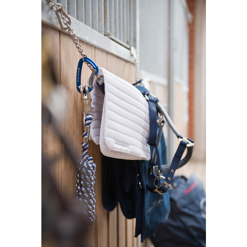 So kann der Aluminium Karabiner an Führstricken und Longen angebracht werden, zum Aufhängen der Heunetze dienen oder als Schlüsselbund fungieren.